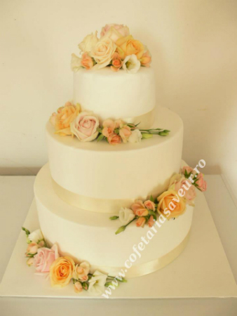Tort de nunta simplu cu trandafiri