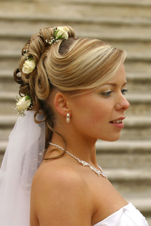 O coafura superba, ce confera miresei frumusete, eleganta si gingasie. Trandafirii din par se potrivesc perfect cu nuanta suvitelor.