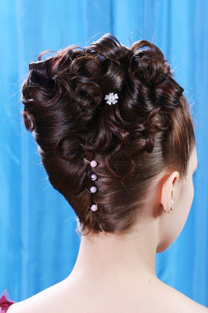O coafura sofisticata indicata mireselor cu fata rotunda sau frunte mica. Nu are breton iar inaltimea cocului cu model la spate confera alungirea formei fetei.Este potrivita atat pentru culorile deschise de par cat si pentru cele inchise.