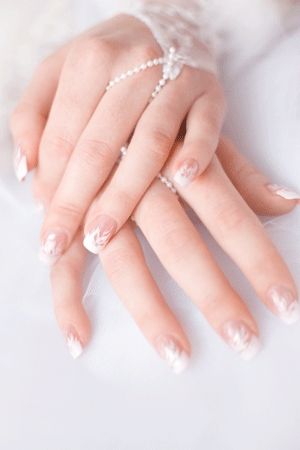 Manichiura pictataUn alt tip de manichiura French este cea pictata. In general sunt recomandate culorile pale, combinate cu alb, putand adauga si nuante de auriu sau argintiu intr-un model delicat si decent. Puteti adauga de asemenea strasuri.