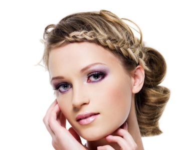 Coafura din imagine imbina o impletitura romantica cu un coc la spate din bucle mari, generoase.