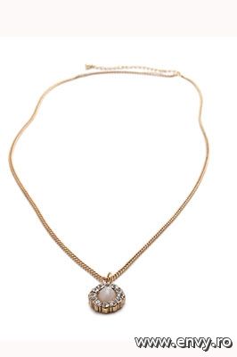 Colier auriu cu pandantiv rotund cu diamante. Produsul este disponibil pe site-ul