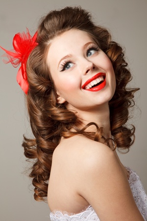 Special pentru miresele care au ales o tema retro pentru organizarea nuntii. In acest caz, accentul se pune pe conturul ochilor si pe nuanta buzelor. Ochii sunt puternic conturati cu un tus negru, iar buzele in nuante de corai pana la rosu intens. Este un machiaj perfect pentru tenul deschis la culoare si pentru miresele care vor sa se simta cu adevarat speciale.
