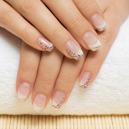 Pentru ca manichiura french este una suficient de banala, dar foarte eleganta in acelasi timp, iti propun pentru ziua nuntii un model special cu aplicatii sclipitoare pe fiecare unghie pentru un efect spectaculos.