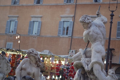 Unii dintre ei se odihnesc stand pe borduri si savurand vestita inghetata italieneasca. Altii, pe la terasele restaurantelor converseaza si mananca pizza sau spaghete, cu buna-dispozitie. Surprinzatoare este intalnirea cu Piazza Navona – un saptiu oval, inconjurat de cladiri galbene italienesti, pe la geamuri cu flori.