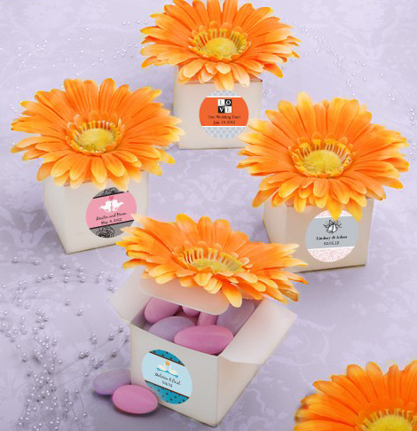 Marturie cutie gerbere. Produsul este disponibil pe site-ul Casatorit.ro