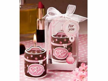 Lumanare sub forma de geanta port-fard. Este ambalata intr-o cutie transparenta tip vitrina care permite vizualizarea produsului.