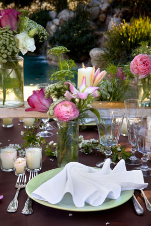 Un decor vesel si putin exotic prin combinatia de culori, potrivit unei nunti organizate in aer liber intr-o gradina, pe malul unui lac ori chiar la munte.