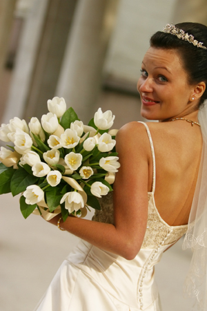 Un superb buchet de lalele, modern ca forma, caci tendintele anul acesta sunt pro buchete stil "dus", fara o forma bine definita. Ideal pentru o nunta primavara.