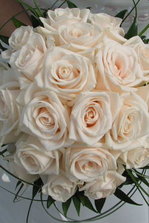 Un buchet clasic si elegant, plin de trandafiri cu o nuanta atent asortata restului tinutei.