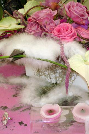 Decor pentru o nunta iarna cu blanita si trandafiri roz