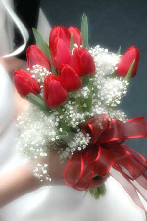Acest buchet inspira veselie si totodata eleganta prin natura florilor pe care le contine - lalele si floarea miresei - cat si prin combinatia contrastanta intre rosu (culoarea pasiunii si a dragostei) si alb (culoarea puritatii).