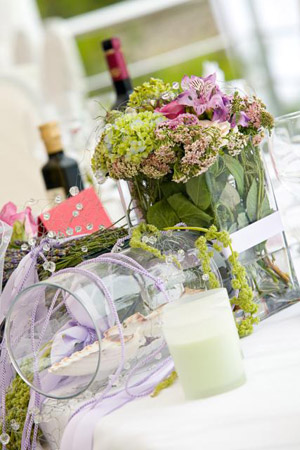 Acesta este un decor potrivit nuntilor vesele si mireselor ce iubesc florile si culorile, ce indragesc veselia. Decorul cuprinde jocuri vii de culori, combinatii intre nuante de verde, roz si mov, precum si detalii romantice ca lumanari albe. Modernitatea este redata de stilul haotic in care elementele decorului sunt aranjate, margelele precum cristalele insirate pe masa, o planta decorativa si un snur inconjoara un pahar rasturnat. Este un decor potrivit nuntilor moderne, futuriste.