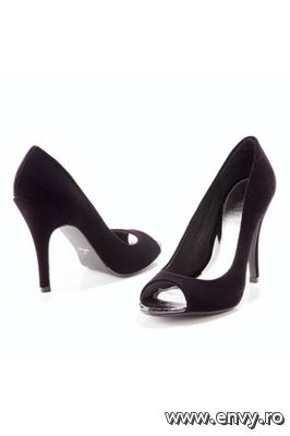 Pantofi negri din piele intoarsa pentru nunta si cununia civila