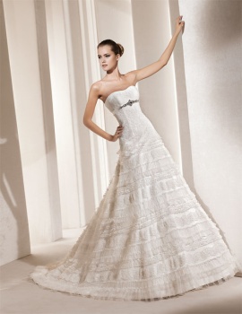 Rochie de mireasa stil printesa cu banda de cristale sub bust