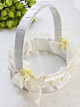 Cosulet nunta satinat decorat cu panglici de organza si trandafiri