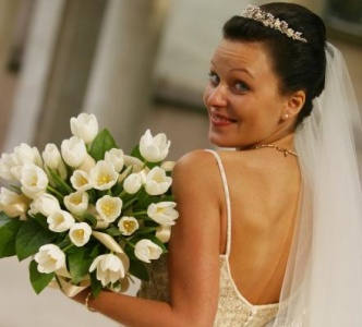 Buchetul de mireasa din lalele albe este de o eleganta si o prospetime iesita din comun, iar forma buchetului poate fi una anturala ca in imagine sau una la alegerea dumneavoastra. O panglica alba groasa este suficienta pentru asortarea lalelelor.