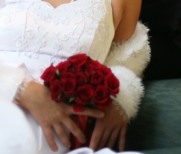 Buchet de mireasa din boboci rosii de trandafiri