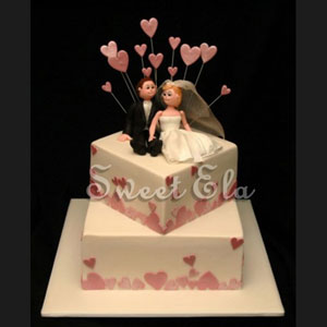 Tortul miresei cu miri indragostiti realizabil in cofetariile SweetEla
