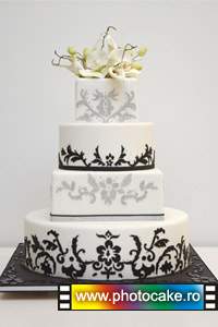 Tort de nunta cu desen abstract disponibil in cofetariile Photocake.ro