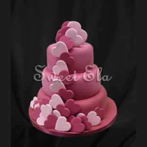 Tortul miresei cu inimioare in nuante de roz disponibil in cofetariile SweetEla