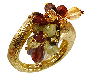 Inel de logodna din aur cu cristale in culori calde, modelat dupa o idee originala. Inelul este disponibil in magazinele Cuatro-Perla