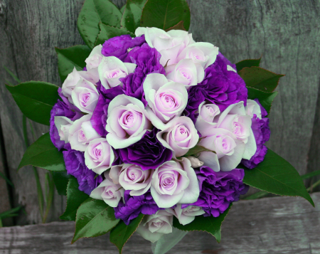 Acest buchet are la baza nuante de violet si roz, care inspira puritate, blandete si modestie.