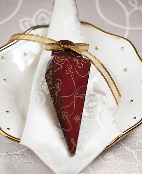 Marturii de nunta, cutie triunghi ruby. Produsul este disponibil pe site-ul