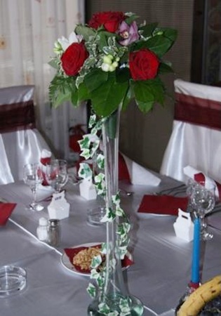 Aranjament floral pentru masa disponibil pe site-ul Malyevents.ro.