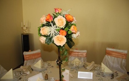 Aranjament floral pentru masa disponibil pe site-ul Malyevents.ro.