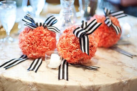 Alege un aranjament floral putin diferit. Pentru fiecare familie in parte realizeaza cate un bulgaras din flori care poate fi utilizat si pe post de marturie.