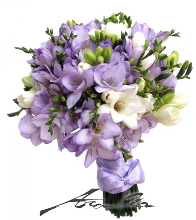 Un buchet inmiresmat de frezia intr-o combinatie glaciara de lila cu alb! Asociem acest buchet cu albul absolut al unei ierni de neuitat, cu copacii inmuguriti dintr-un peisaj de primavara sau cu bucuria unei zile insorite de vara.