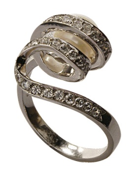 Inel de logodna cu spirala si perla disponibil in magazinele Cuatro-PerlaMai multe