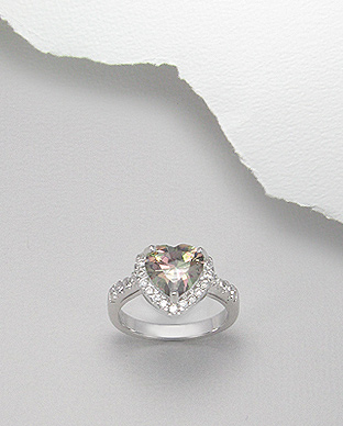 Inel de logodna model inima din argint cu aspect de aur alb cu piatra fumurie. Piatra straluceste cu efect de curcubeu. Pret : 197.00 Lei. Produsul este disponibil pe site-ul Silverzone.ro