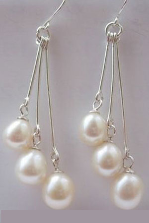 Cercei cu tortita, din argint rodiat de puritate 925, cu trei perle albe, ovale cu dimensiunea de 7,5 mm. Disponibili in magazinele Fashion Guru.