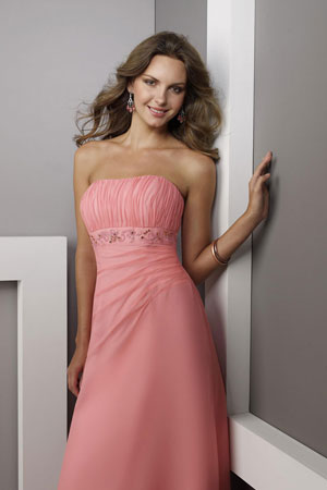 Rochie pentru domnisoare de onoare roz, cu volum pentru bust