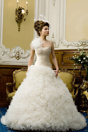 Rochie de mireasa cu volane foarte bogate