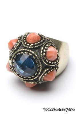 Inel cu pietre mate corai si albastre disponibil in magazinele Mango.