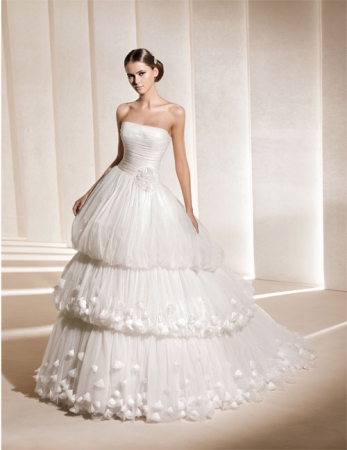 Rochie de mireasa diafana in trei straturi de volanase simple brodate manual, disponibila in Magazinele Biensavvy.ro, colectia La Sposa 2011.