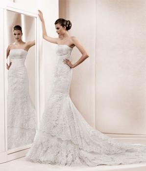Rochie din dantela pentru mirese in stil sirena disponibila in magazinele Biensavvy.