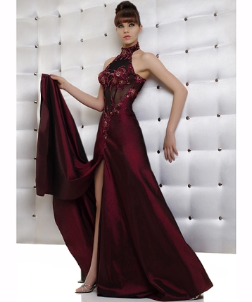 Rochie pentru domnisoarele de onoare culoare visinie disponibila i magazinele Biensavvy.