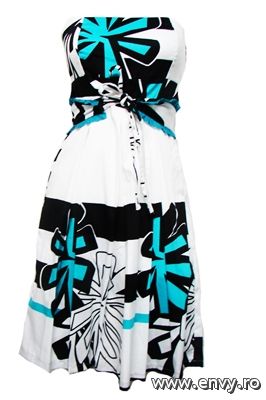Rochie fara bretele cu desen floral abstract disponibila in magazinele ToendaFashion