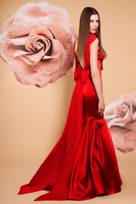 Rochie lunga rosie cu funda disponibila in magazinele Biensavvy