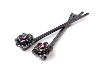 Set de doua clamite cu floricica decorata cu piatra.