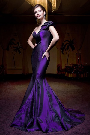 Rochie mov stil Sirena pentru domnisoarele de onoare disponibila in magazinele Biensavvy