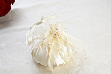 Poseta mireasa realizata din satin si organza decorata cu panglici de organza si trandafiri. Se poate personaliza schimband culoarea decoratiunii.Pret: 30,5 Lei