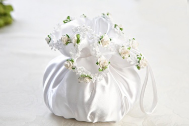 Poseta mireasa realizata din satin si decorata cu trandafiri. Se poate personaliza schimband culoarea decoratiunii.Pret: 30,5 Lei