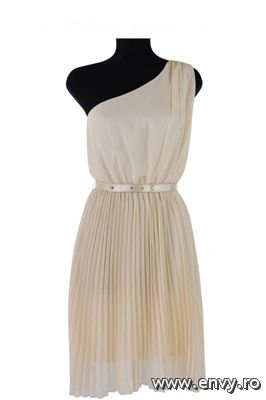 199.99 lei Rochie model pe un umar cu captuseala. Partea de jos este din material plisat. Curea satinata in talie.Rochie de seara disponibila in magazinele: FashionUp