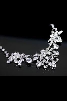 Colier pentru mirese cu model floral si cristale disponibil in magazinele Borealy