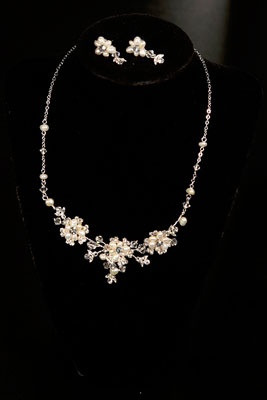 Set de bijuterii mireasa compus din cercei si colier realizat din cristale Swarovski Crystalized Ellements. Suport argintat. Realizate manual.